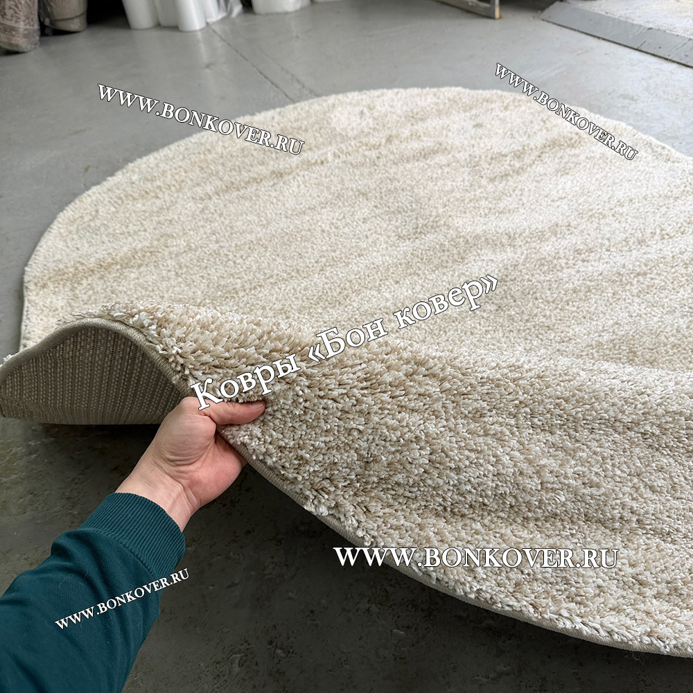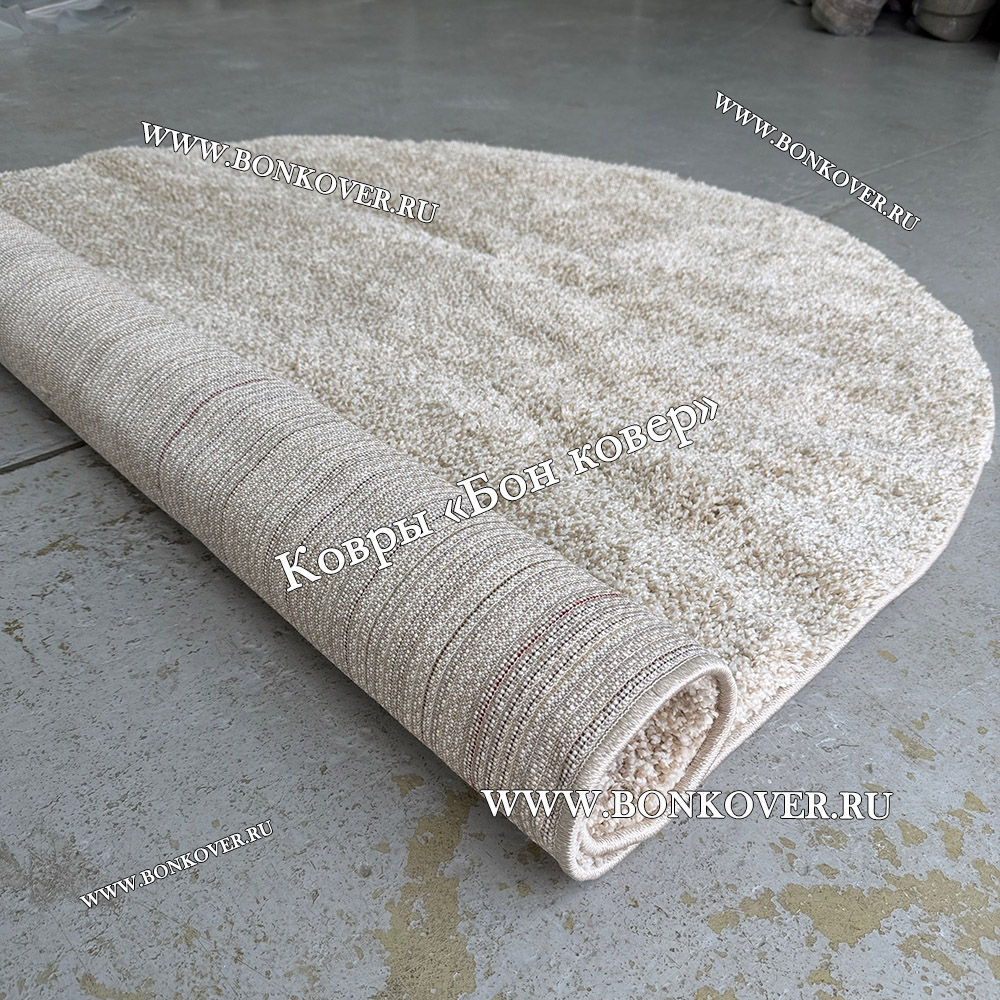 Бежевый с Белым Овальный Ковер С Длинным Ворсом