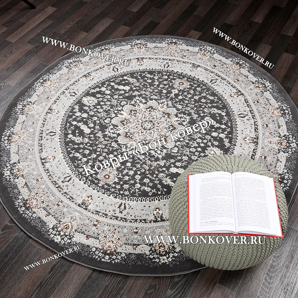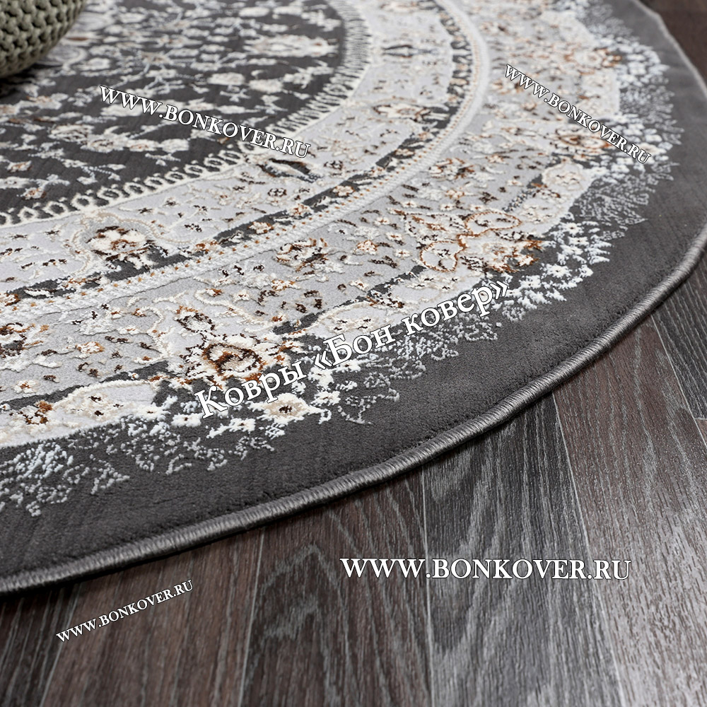 Красивый Ковер Для гостиной дизайн 68 Турция Серый Круг наполняет интерьер жилого пространства теплом и уютом, гармонично сочетает в себе изящество и стиль. Он соткан из экологически чистого сырья, комфортный и долговечный.