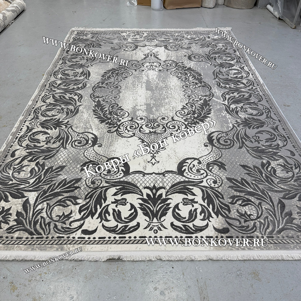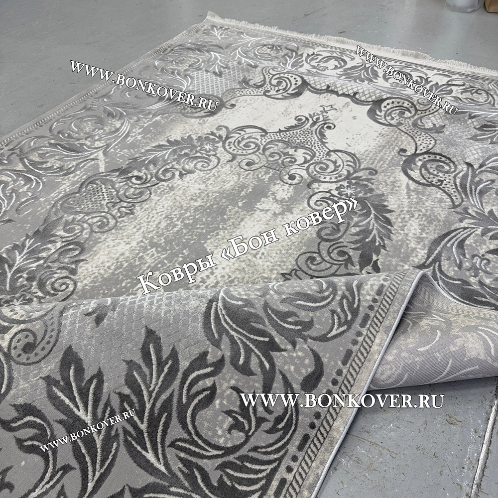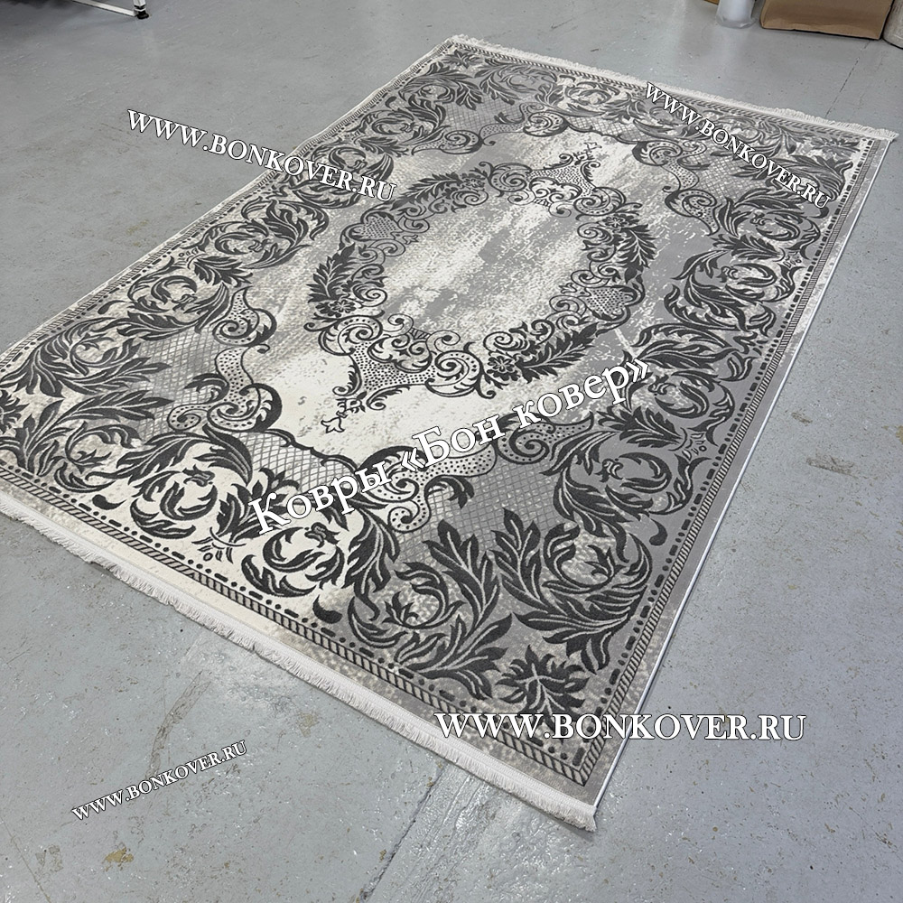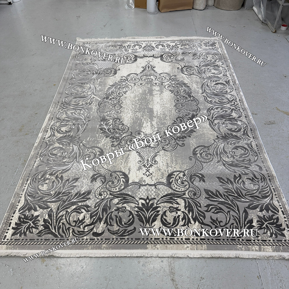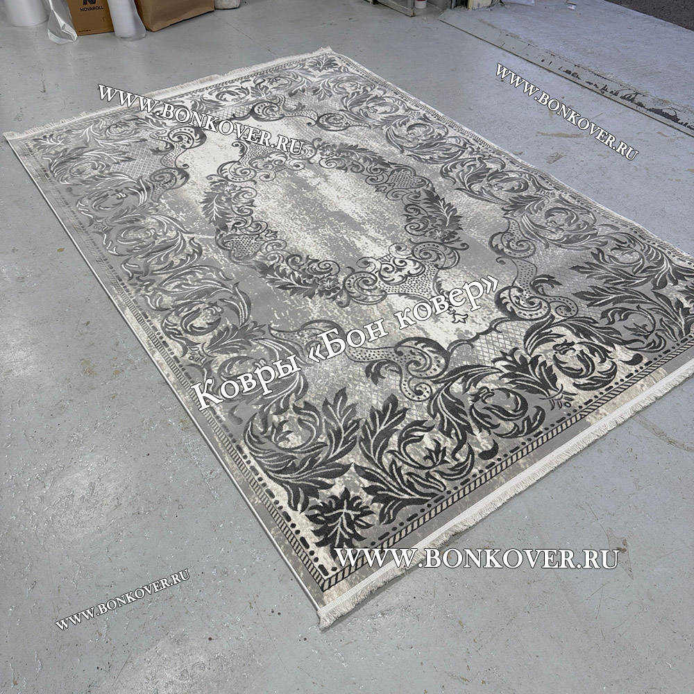 Изящный Ковер Турция Для Гостиной Дизайн 96 Серый наполняет интерьер вашего дома теплом и уютом, гармонично сочетает в себе изящество и красоту. Он изготовлен из экологически чистого сырья, прочный и долговечный.