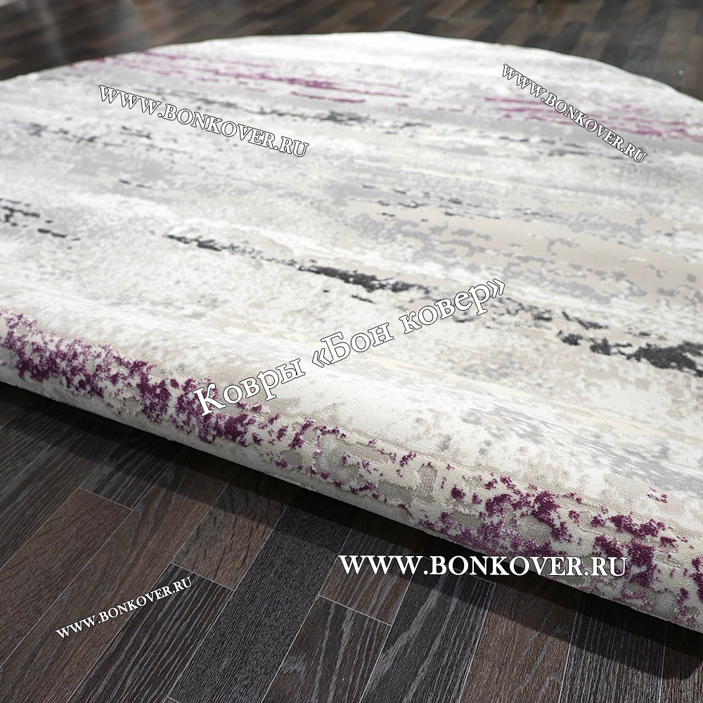Красивый Круглый Ковер Для Гостиной Сиреневый С Серым Дизайн 30451 наполняет интерьер вашего дома теплом и уютом, гармонично сочетает в себе изящество и стиль. Он соткан из высококачественных материалов, прочный и долговечный.
