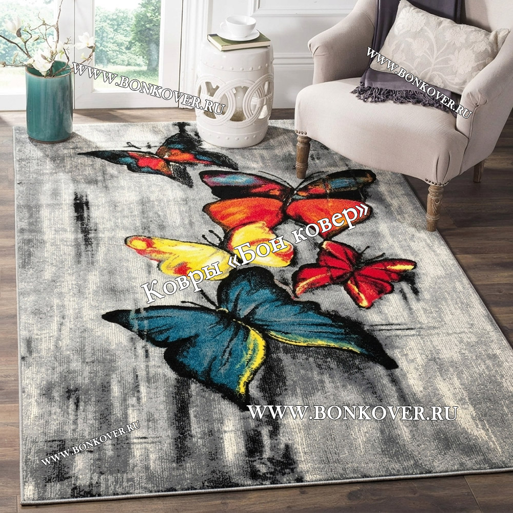 Современный Ковер С Бабочками станет привлекательным дополнением интерьера, оформленного в современном или классическом стиле. Мягкое, но прочное, ковровое изделие обеспечивает тепло- и шумоизоляцию, отличается длительным сроком эксплуатации, пожаробезопасностью, экологичностью и высокой износостойкостью, является отличным барьером от повышенной влажности в помещении и утеплителем для холодного пола. Благодаря качеству материалов, ковер не деформируется, сохраняет форму под тяжестью предметов мебели. За его поверхностью легко ухаживать.