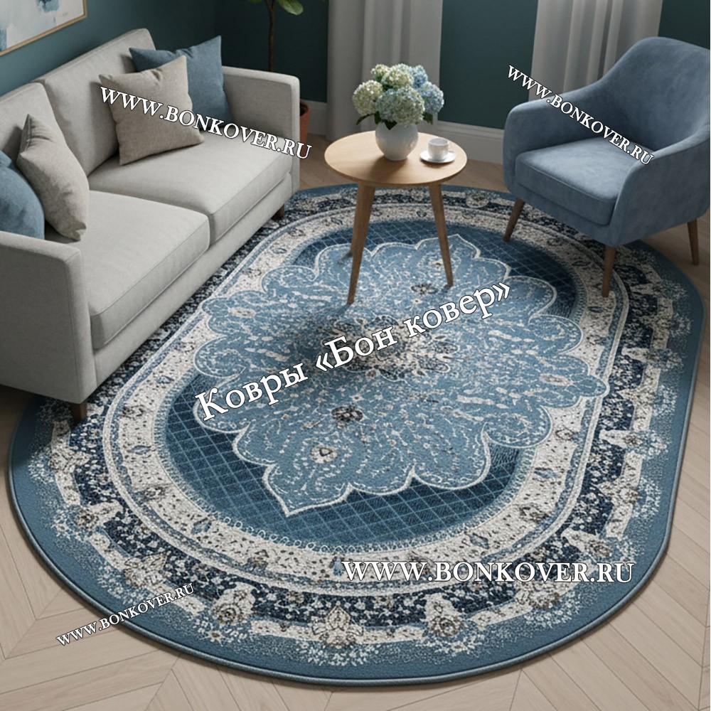 Турецкий Ковер Для гостиной New дизайн 079 Овал станет гармоничным дополнением интерьера, оформленного в современном или классическом стиле. Мягкое, но прочное, ковровое изделие обеспечивает тепло- и шумоизоляцию, отличается длительным периодом эксплуатации, пожаробезопасностью, экологичностью и высокой износостойкостью, является отличной преградой от повышенной влажности в комнате и утеплителем для холодного пола. Благодаря качеству материалов, ковер не деформируется, сохраняет первоначальный вид под тяжестью предметов мебели. За его поверхностью легко ухаживать.